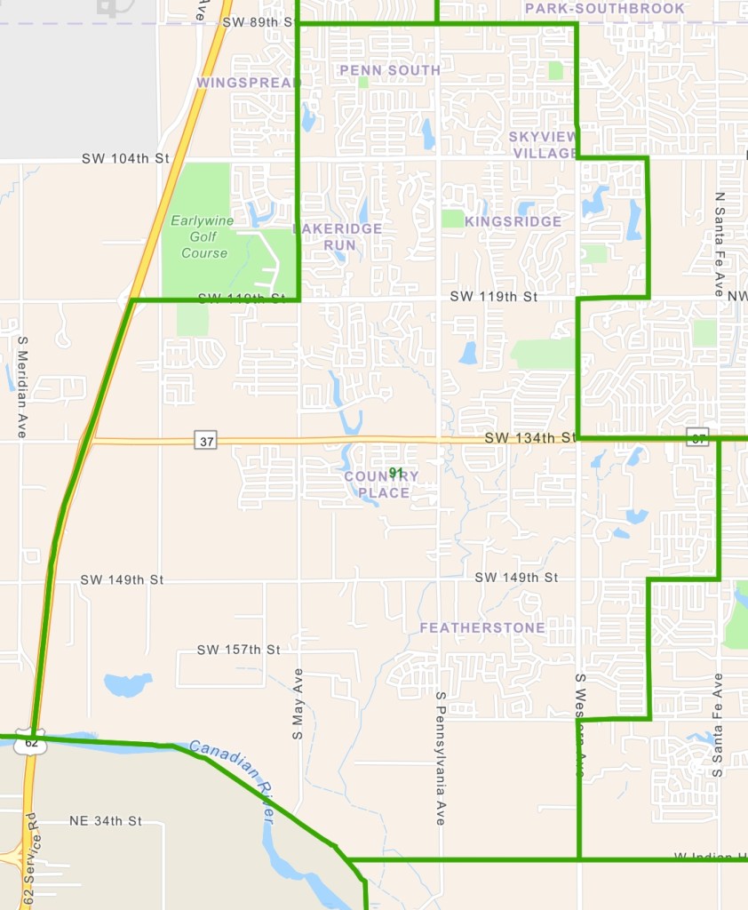 District 91 is represented by zip codes 73139, 73159, 73160, and 73170. We reside in Moore Schools, Cleveland County, and we have approximately 40,000 residents and we cover 19 square miles.
